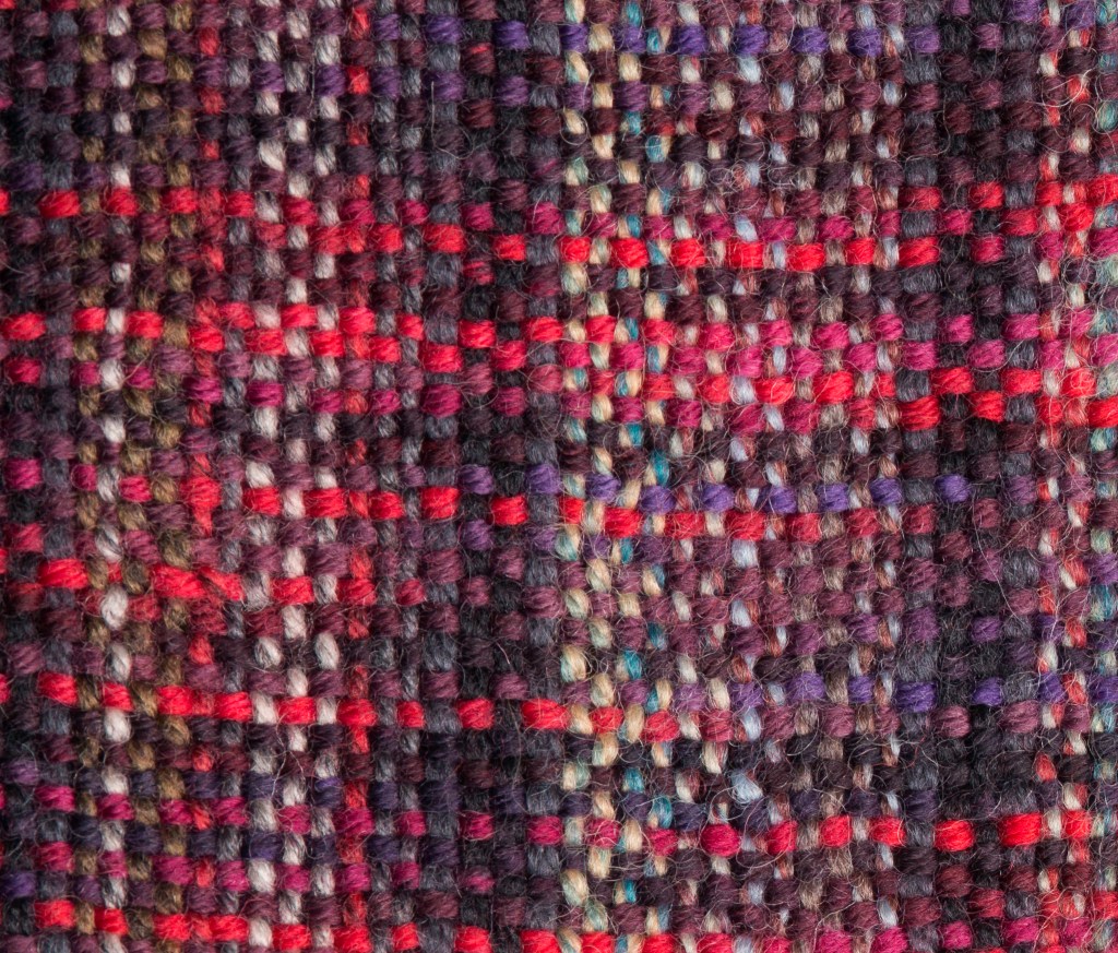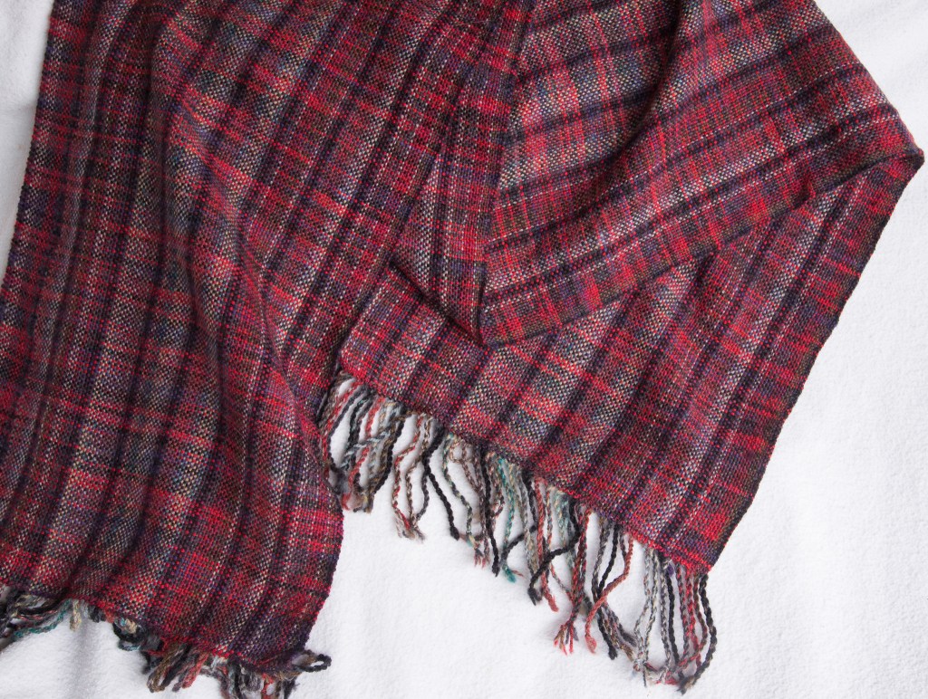 This understated scarf incorporates red and purple yarns with grey and brown highlights. The Italian extra-fine merino makes up the largest proportion of it, making it deliciously soft to touch.