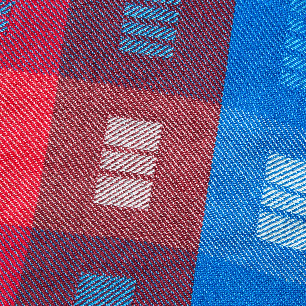 This coluurful scarf was woven from fine silk, organic cotton, and bamboo yarns. It has a lovely softness on the skin and a beautiful drape.