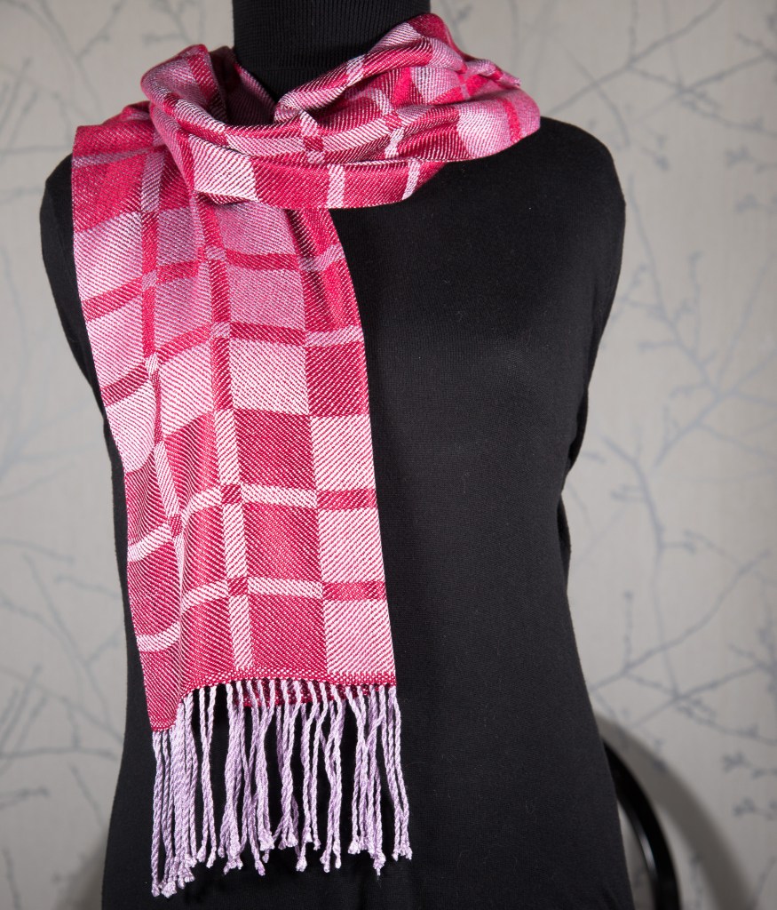 In late 2021 and early 2022 I wove a series of pure silk scarfs in one design but different colours.
