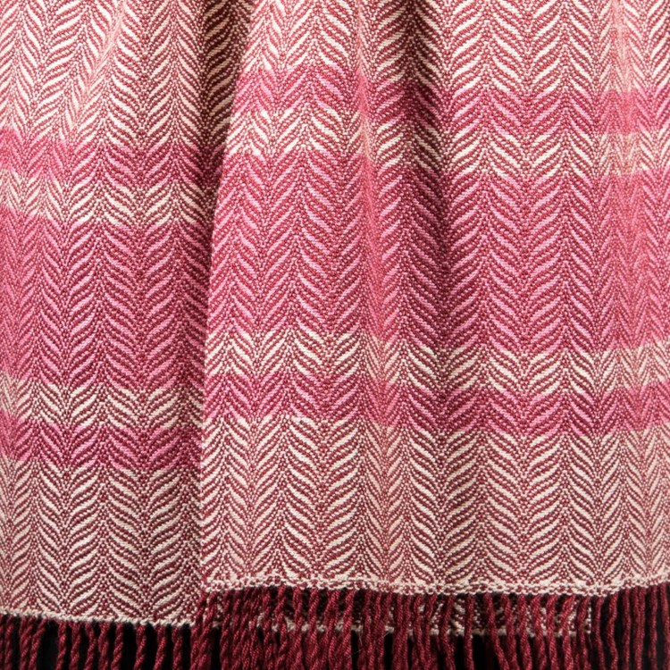Burundy and cream scarf with pink highlights Burgundy and cream scarf with pink highlights. Made from organic cotton and bamboo. – sold – This lovely soft organic cotton and bamvoo scarf was a commission for somebody’s friend. Here is a closeup: Handweaving available now Have something made